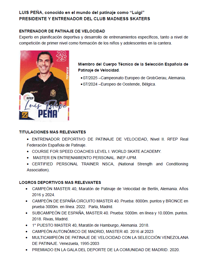 MADNESS SKATERS, Club de patinaje de velocidad, se crea en la Comunidad de Madrid en 2024, de la mano de Luis Peña, ‘Luigi’.
